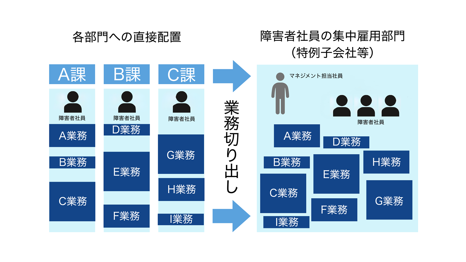 障害者の特性や能力にあった業務を確定させ、その業務を遂行できる人材の採用マッチングを行いますので、部門配属型の障害者採用と異なり、計画的に採用を進めることが可能です。従業員数の増加や法定雇用率の引き上げに対応した雇用拡大を進められることは大きな強みです。
